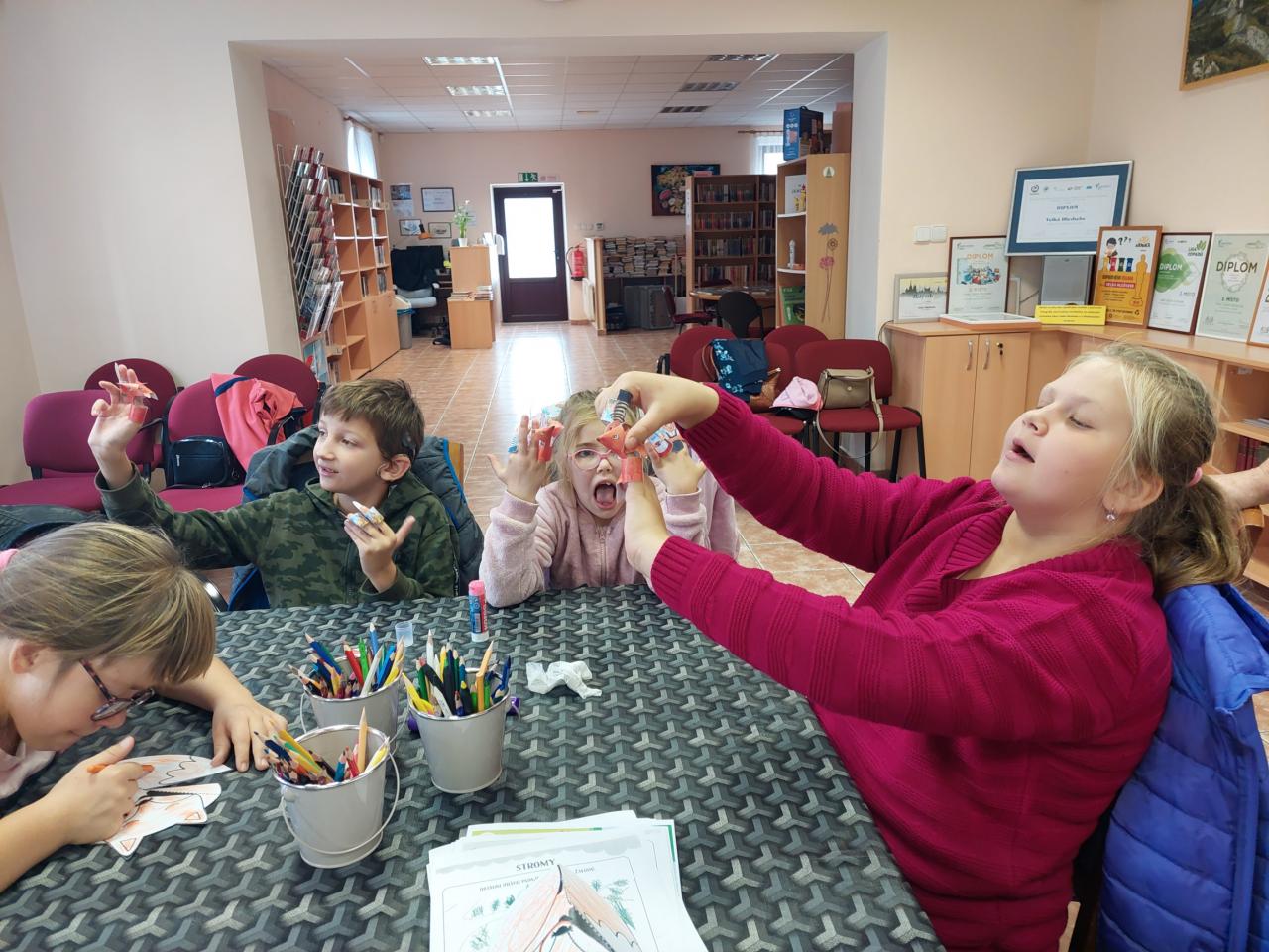 Jako první přišla třída II.S, ZŠ Vítězství z Mariánských Lázní. Děti byly neuvěřitelně šikovné. Společně jsme si přečetli pohádku, tvořili jsme divadýlko a vyřešili záludné úkoly.