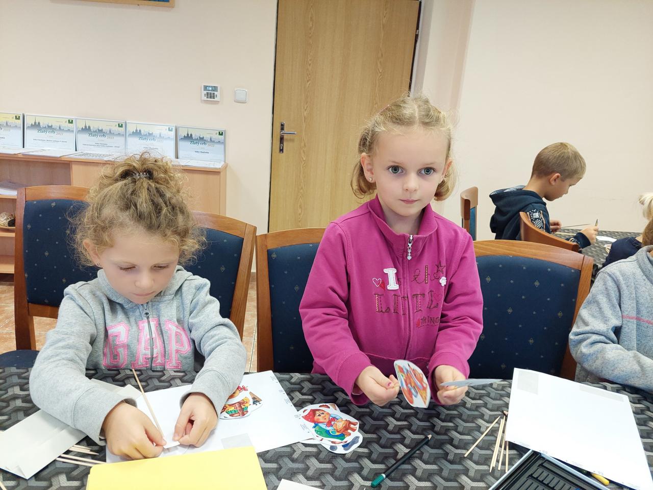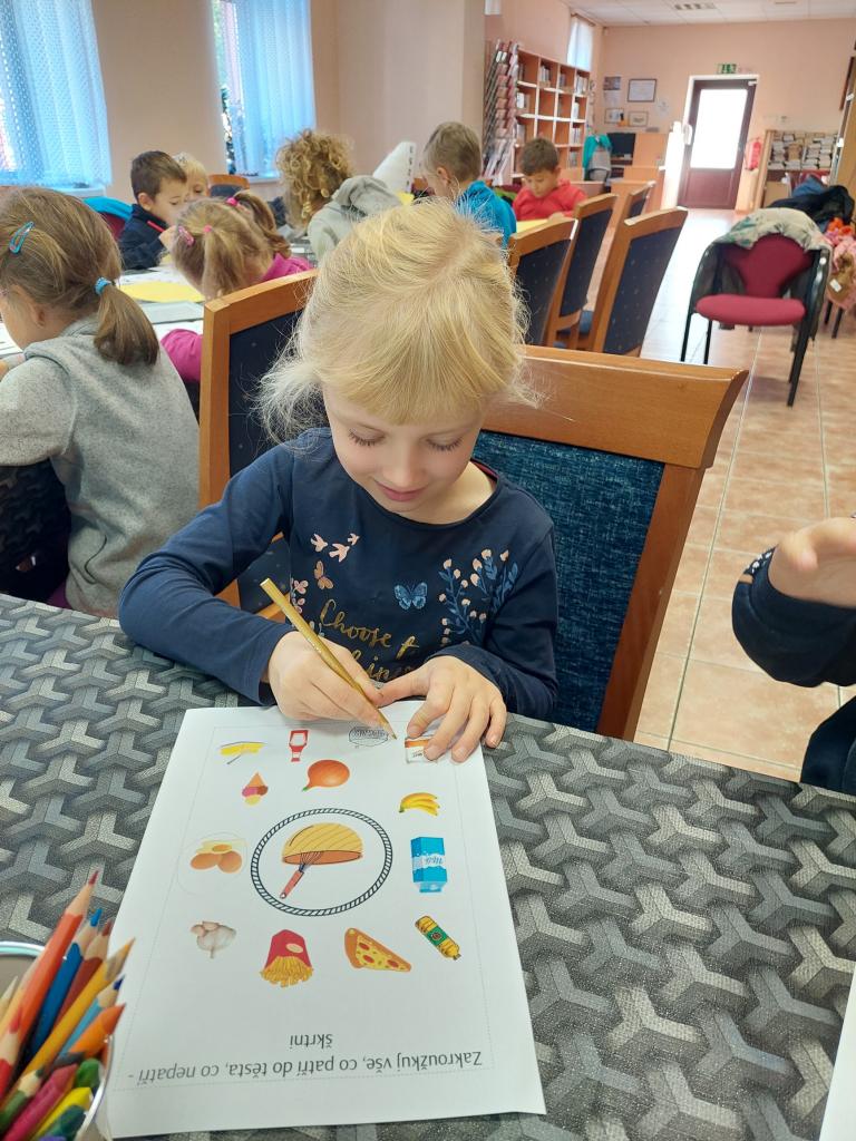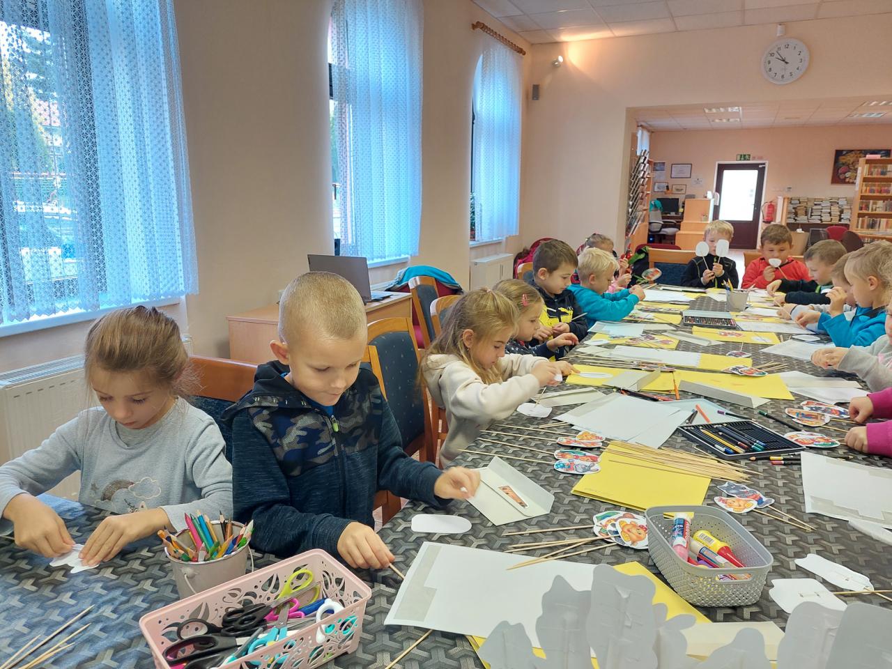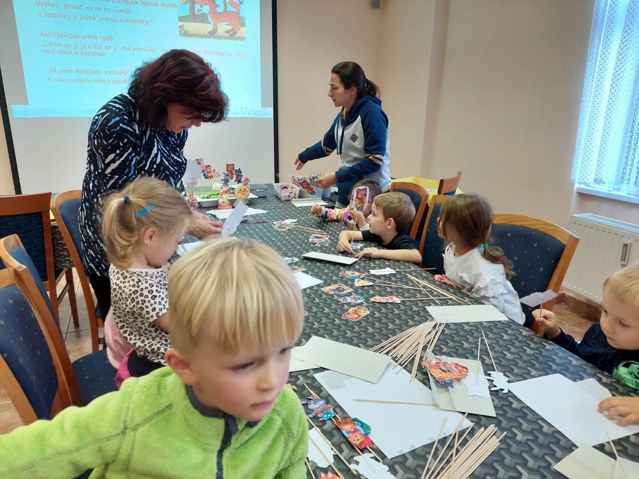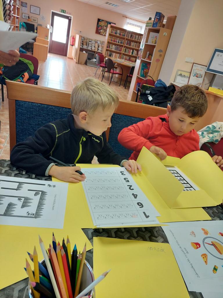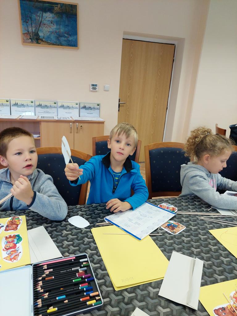 Dnes jsme zahájili pravidelné besedy se školkami. Jako první přišla školka z Velké Hleďsebe. Nejdříve druhá třída a poté první. Povídali jsme si a tvořili na pohádku O Koblížkovi.
