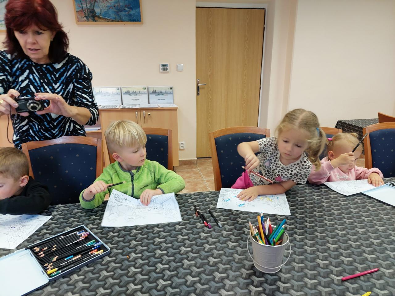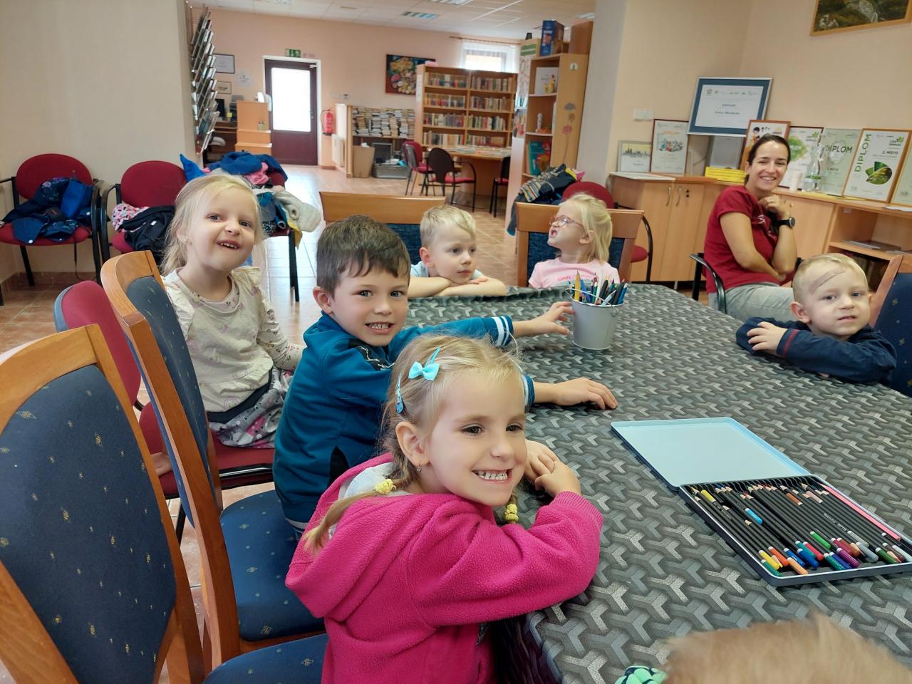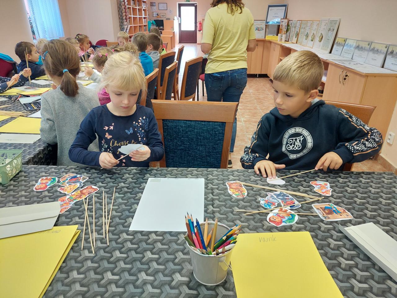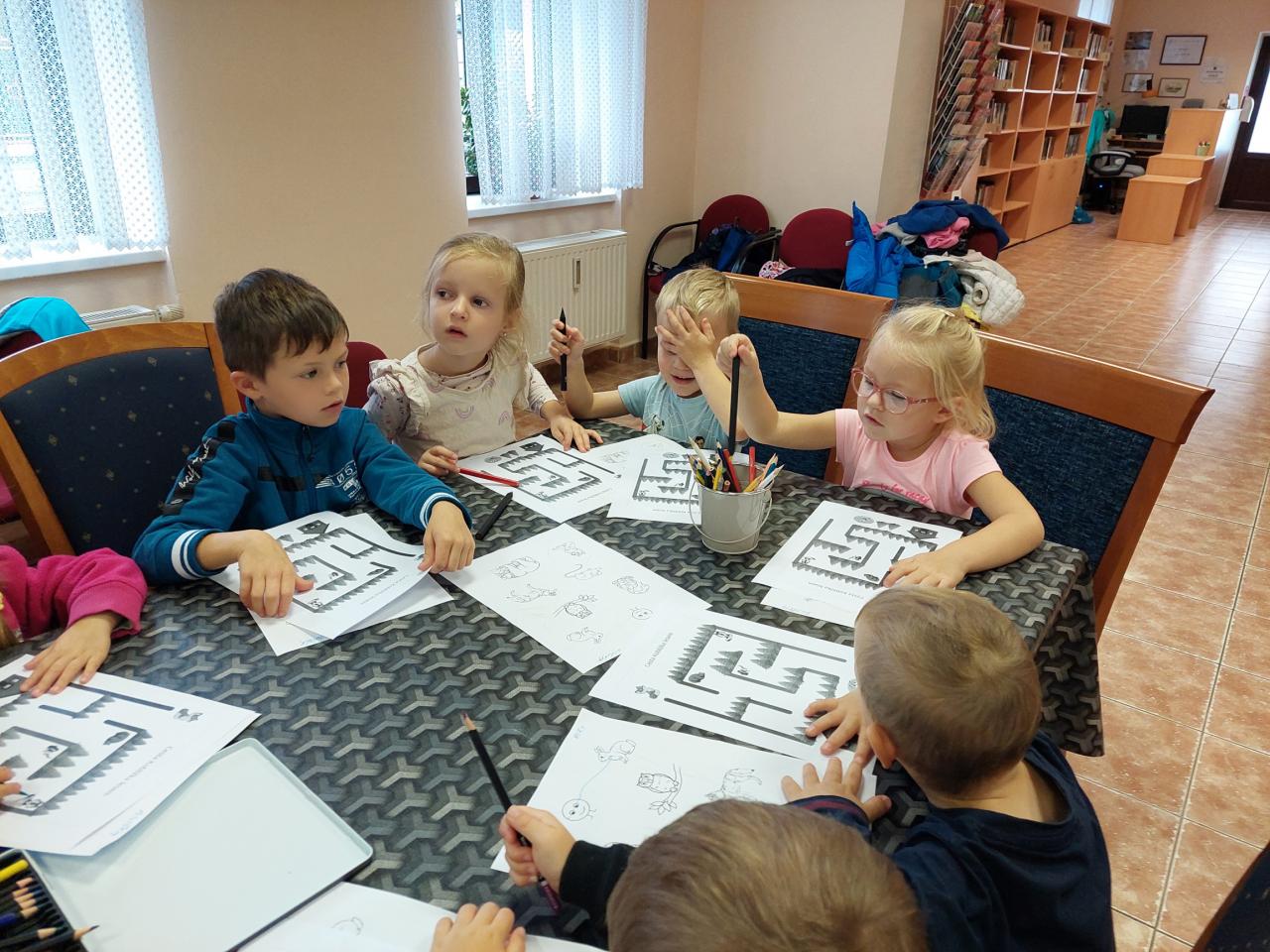 Dnes jsme zahájili pravidelné besedy se školkami. Jako první přišla školka z Velké Hleďsebe. Nejdříve druhá třída a poté první. Povídali jsme si a tvořili na pohádku O Koblížkovi.
