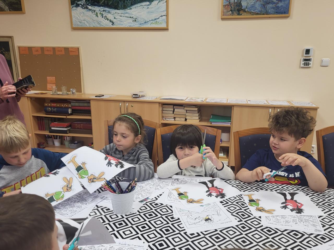 ,Na pláž" to je díl pohádky Jen počkej, Zajíci, který jsme shlédli s MŠ Úšovice. Poté jsme společně hledali rybky a rozdíly na obrázcích. Vystřihli si vlka a zajíce a prohlédli knihy s tímto seriálem.